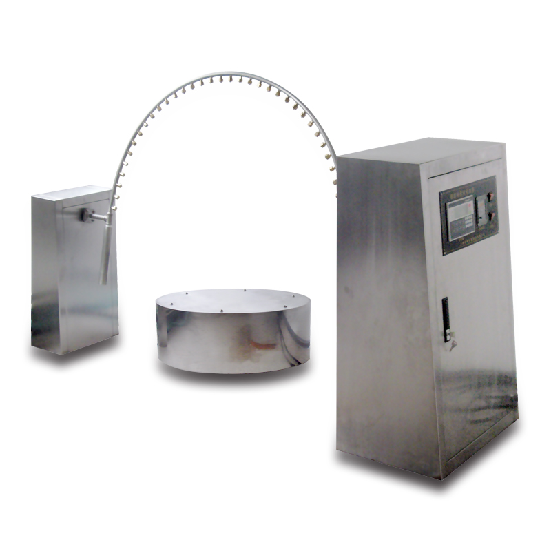 擺管淋雨實驗裝置主要是測試產品在淋雨的氣候環境下的貯存,運輸和使用時的性能試驗,主要用于對電工電子產品,燈具,電柜,電器元件,汽車,摩托車及其零部件等產品在模擬淋雨的氣候條件下,對產品的物理以及其它相關性能進行測試。